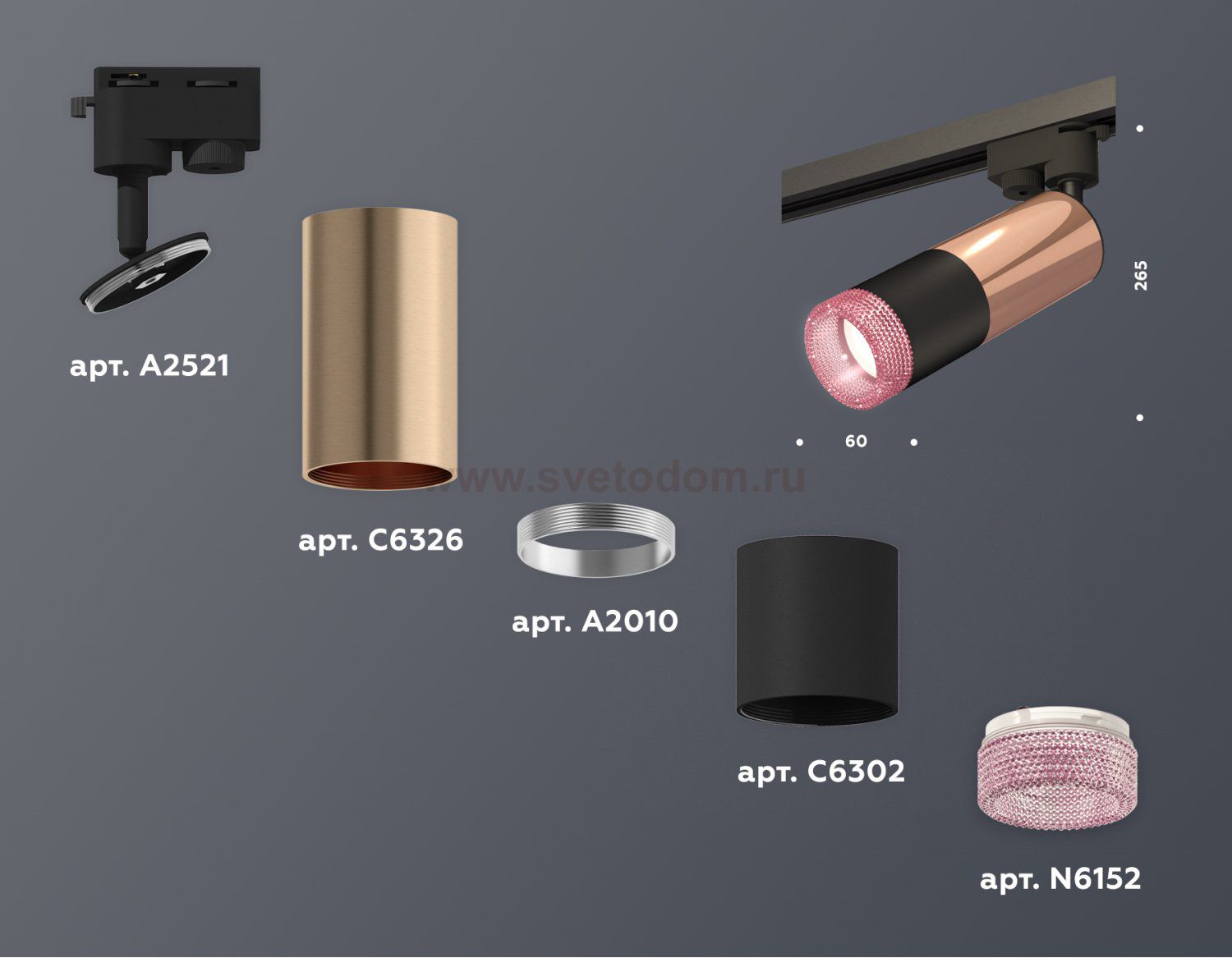 Комплект трекового однофазного светильника с композитным хрусталем Артикул производителя