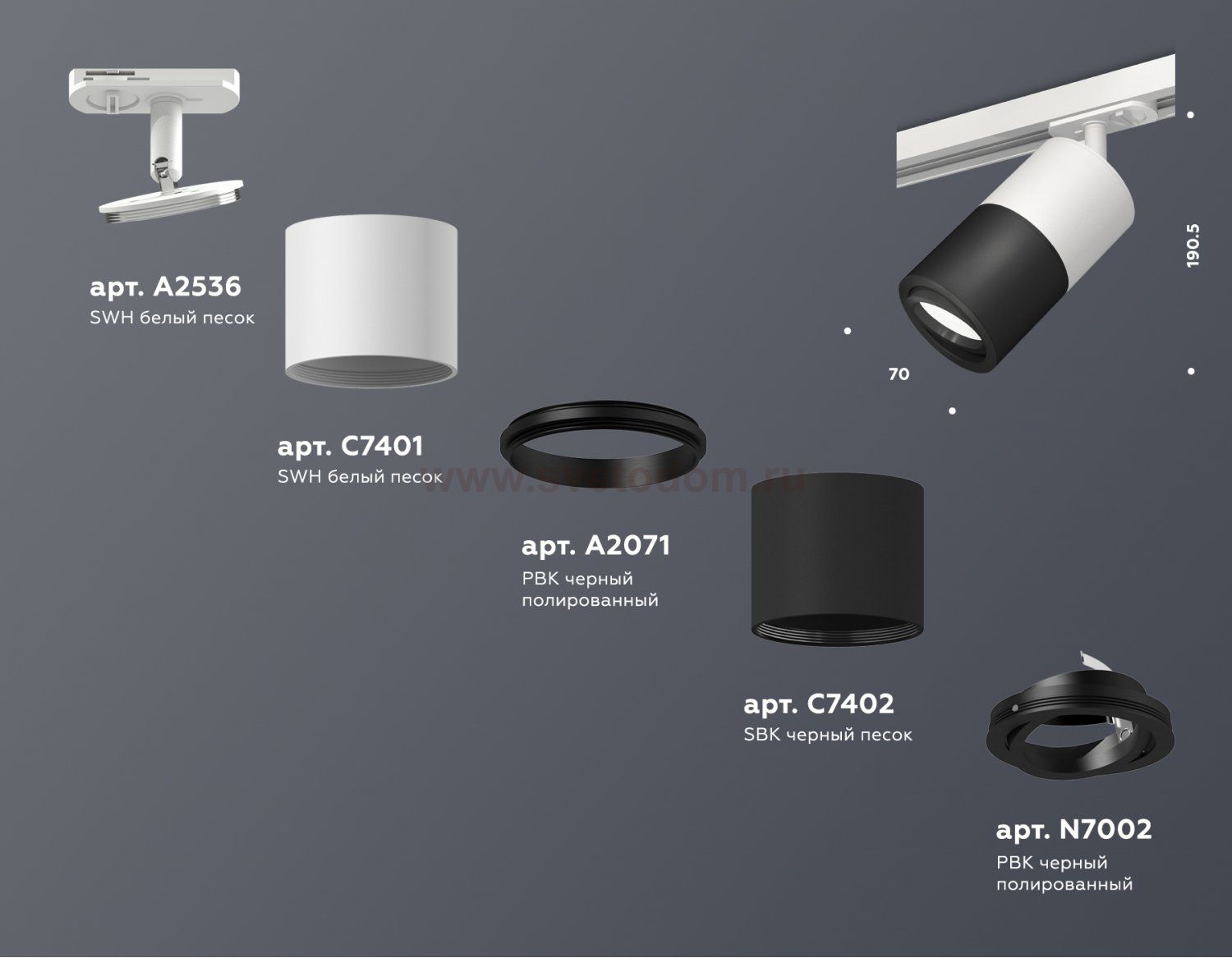 крепеж трековый D70, корпус накладной D70*2шт, коннектор D70, насадка передняя D70 Отзывы Комплект поворотного трекового светильника Ambrella XT7402002 XTПока нет отзывов об этом товаре, напишите и он обязательно появится после модерации! Оставить свой отзывПохожие товары Другие товары магазина Фото