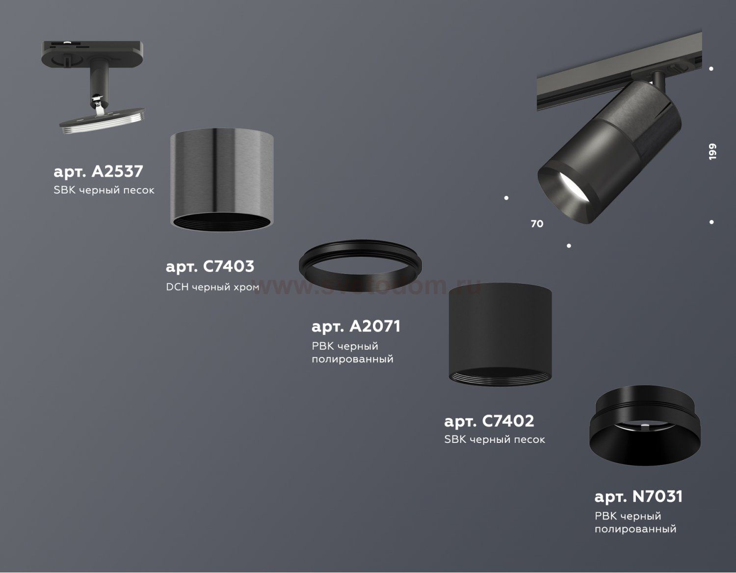 крепеж трековый D70, корпус накладной D70*2шт, коннектор D70, насадка передняя D70 Отзывы Комплект трекового светильника Ambrella XT7402050 XTПока нет отзывов об этом товаре, напишите и он обязательно появится после модерации! Оставить свой отзывПохожие товары Другие товары магазина Фото