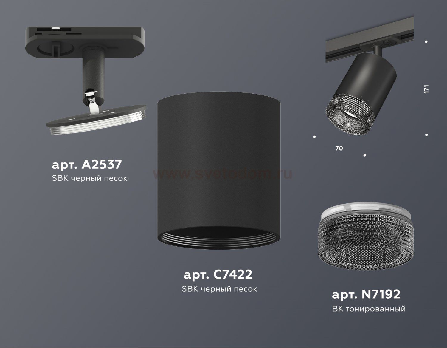 крепеж трековый D70, корпус накладной D70, насадка передняя D70 Отзывы Комплект трекового светильника с композитным хрусталем Ambrella XT7422010 XTПока нет отзывов об этом товаре, напишите и он обязательно появится после модерации! Оставить свой отзывПохожие товары Другие товары магазина Фото