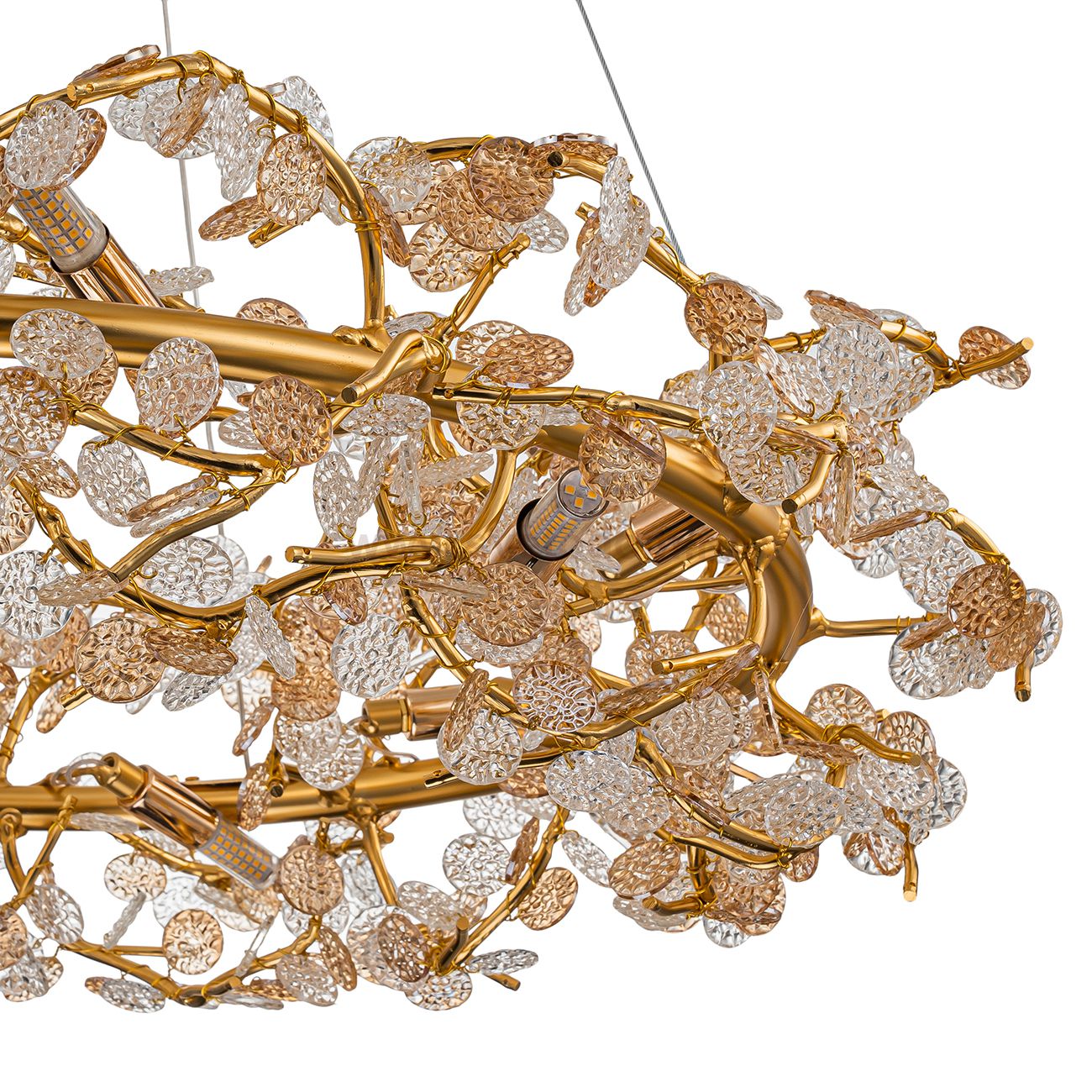 Словно венец славы, серия SPLENDORE символизирует триумф и победу. Его позолоченные завитки кружатся с аристократической грацией, а хрустальные фактурные листья прозрачного и янтарного оттенка переливаются и мерцают. Позвольте серии SPLENDORE наполнить ваше пространство аурой достижений и новых побед. Размер 770*770*200/1000 Мощность G9 12xMAX 10W Цвет ЗОЛОТО/ПРОЗРАЧНЫЙ Материал МЕТАЛЛ/СТЕКЛО