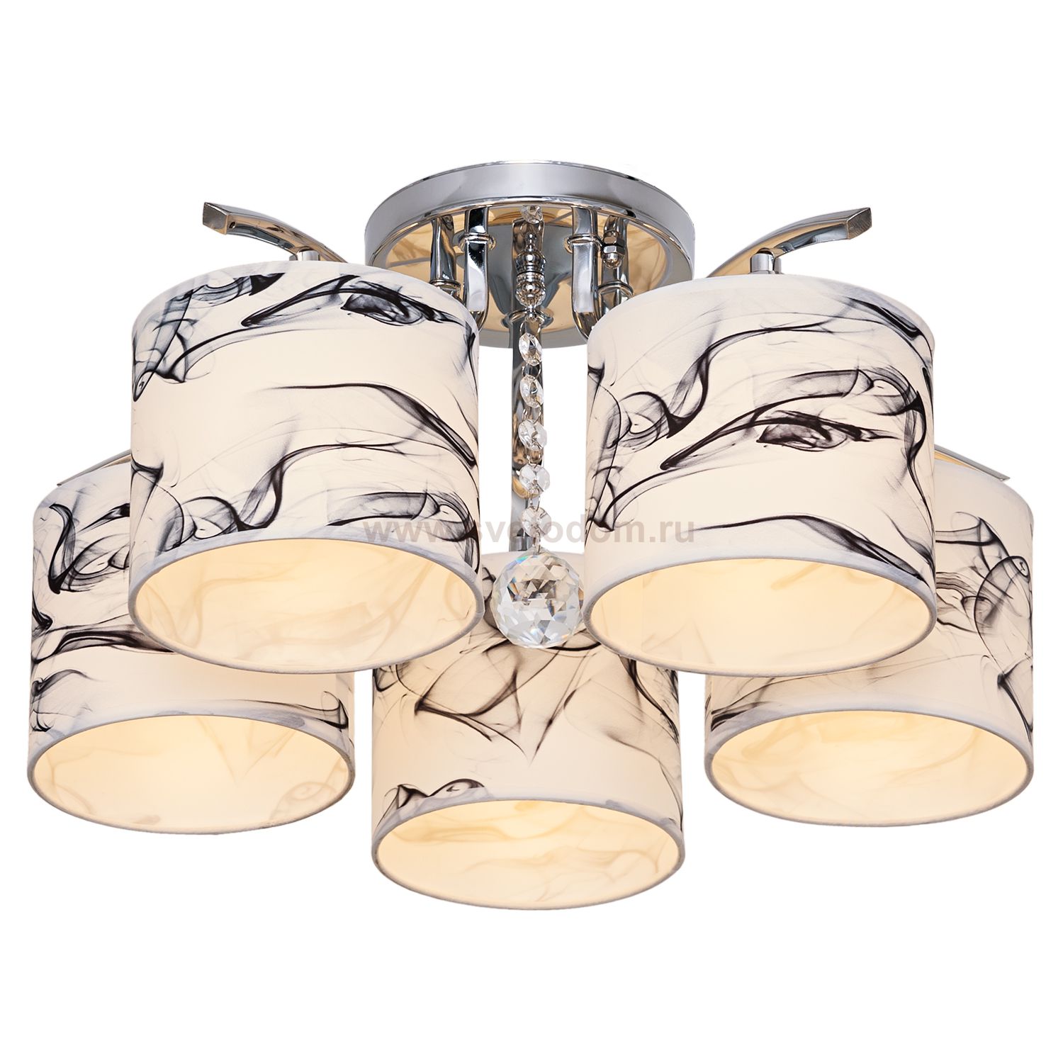 Люстра классическая 30955/5CR PNT от бренда ЭкономСвет. Каркас выполнен из материала металл, цвет хром. Плафоны (светорассеиватели) выполнены из материала текстиль, цвет белый с черным принтом. Цоколь E27 рассчитан на лампы максимальной мощности до 40 Вт, а максимальная площадь освещения составит до 11 м?.