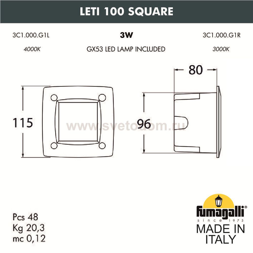 Касаемо артикула 3C1.000.000.LYG1L важно знать - Светильник для подсветки лестниц встраиваемый FUMAGALLI серии LETI, модель LETI 100 Square - изготовлен в Италии. Основное назначение - мягкое, акцентное освещение небольших площадей, световой дизайн, ландшафтная подсветка. Отлично подходит для освещения лестничных маршей, коридоров, подпорных стенок, ландшафтного освещения. Устанавливается в вертикальные поверхности, например в стены, колонны, откосы ступеней. В поверхность монтируется и закрепляется закладной элемент "стакан", в который выводится электрический провод. Далее, в эту деталь устанавливается сам уличный светильник LETI и подключается электропитание. Корпус изготовлен из современного вандалостойкого, негорючего полимера RESIN не требующего окраски. Прочного, окрашенного в массе, не ржавеющего и не выгорающего на солнце. Все светильники пыле-влаго защищены по стандарту IP66. Корпус ландшафтного светильника не проводит электричество, относится к 2 классу электробезопасности. Рассеиватель выполнен из антивандального, не мутнеющего и не горючего PMMA. Срок службы светильника - не менее 20 лет. Не требуется трансформатор. Напряжение питания - 220 В. Температура использования от -60 до +90. При заказе требуется выбрать цвет корпуса.