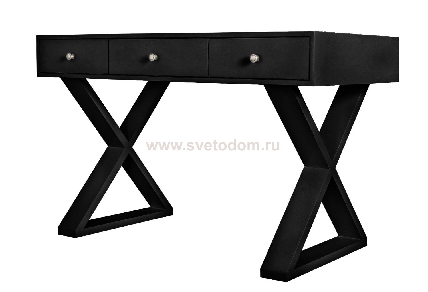 Дизайнерский письменный стол Jasper Black черного цвета, с прямоугольной столешницей размером 125х60 см и тремя выдвижными ящиками, расположенными с боковой стороны. Широкие ножки попарно перекрещиваются между собой, с образованием интересных «Х»-образных конструкций по торцам. Модель изготовлена с использованием натурального деревянного массива и высококачественного МДФ, устойчивого к теплу и механическим воздействиям.