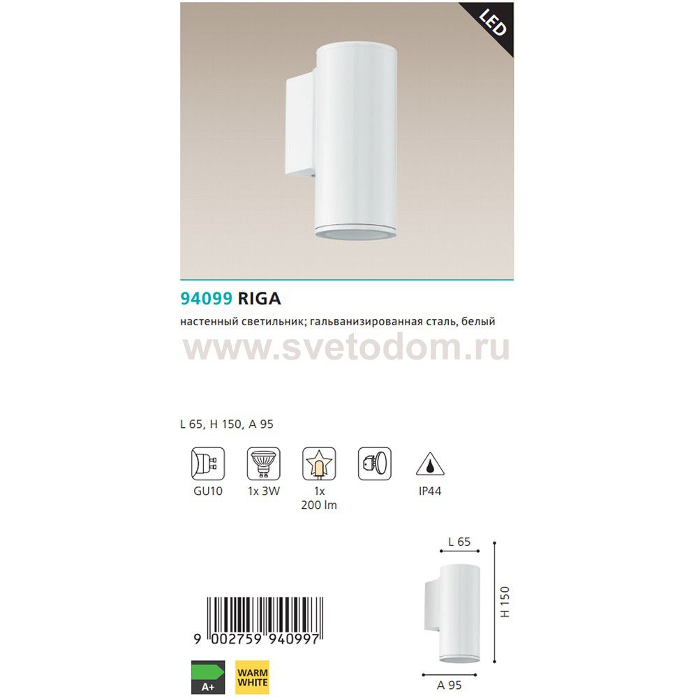Обеспечение качественного уличного освещения – важная задача для владельцев коттеджей. Компания «Светодом» предлагает современные светильники, которые порадуют Вас отличным исполнением. В нашем каталоге представлена продукция известных производителей, пользующихся популярностью благодаря высокому качеству выпускаемых товаров. Уличный светильник Eglo RIGA 94099 уличный не просто обеспечит качественное освещение, но и станет украшением Вашего участка. Модель выполнена из современных материалов и имеет влагозащитный корпус, благодаря которому ей не страшны осадки. Купить уличный светильник Eglo RIGA 94099 уличный, представленный в нашем каталоге, можно с помощью онлайн-формы для заказа. Чтобы задать имеющиеся вопросы, звоните нам по указанным телефонам.