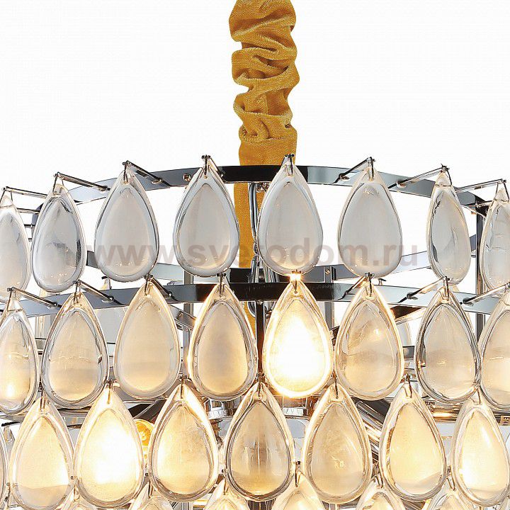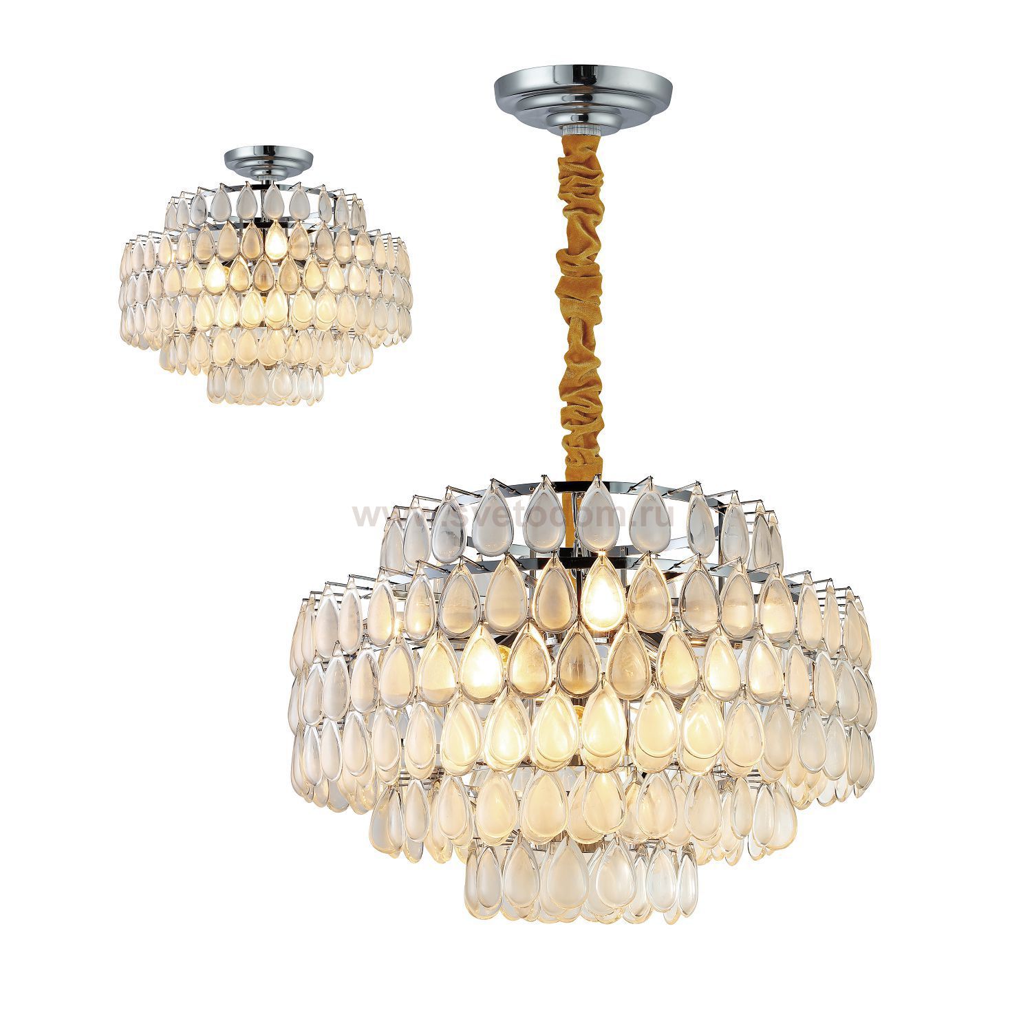 каркас покрыт гальваникой цвета хром, стеклянные подвески белого цвета Комментарий