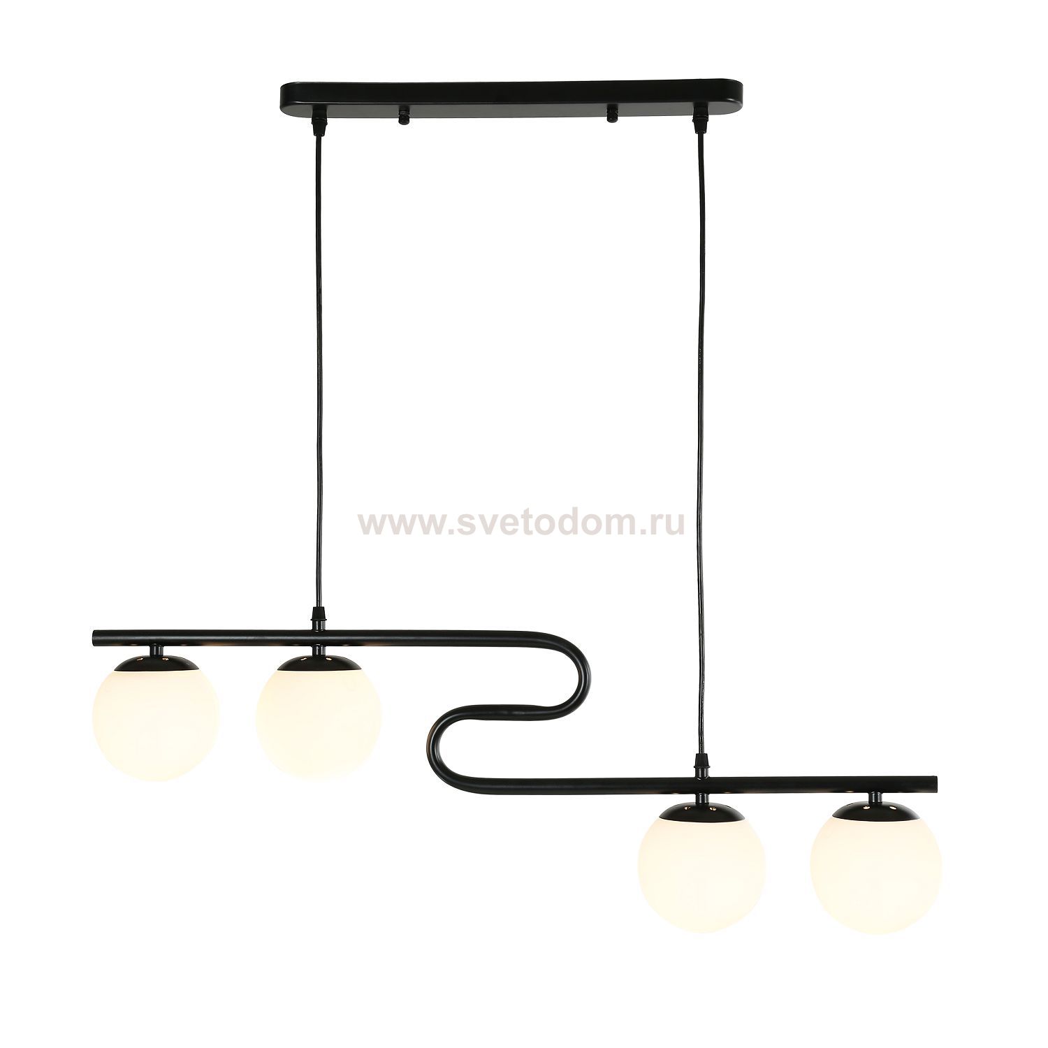каркас изогнутой формы черного матового цвета, плафоны из белого стекла Цвет декора