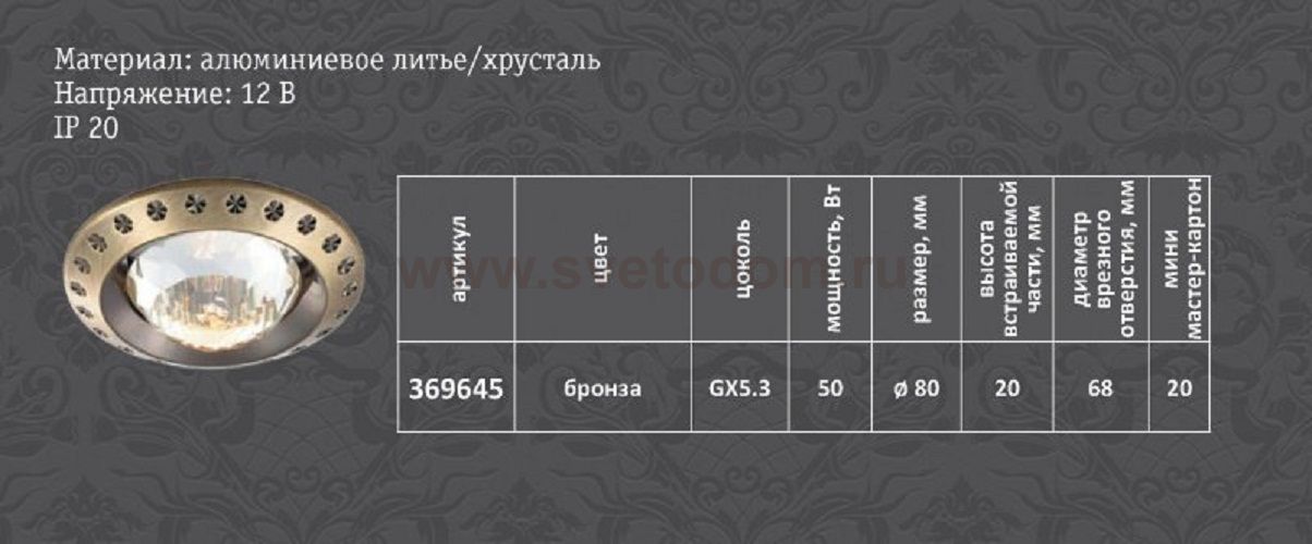75 Отзывы Точечный встраиваемый светильник Novotech 369645 GLAMПока нет отзывов об этом товаре, напишите и он обязательно появится после модерации! Оставить свой отзывПохожие товары Другие товары магазина Фото