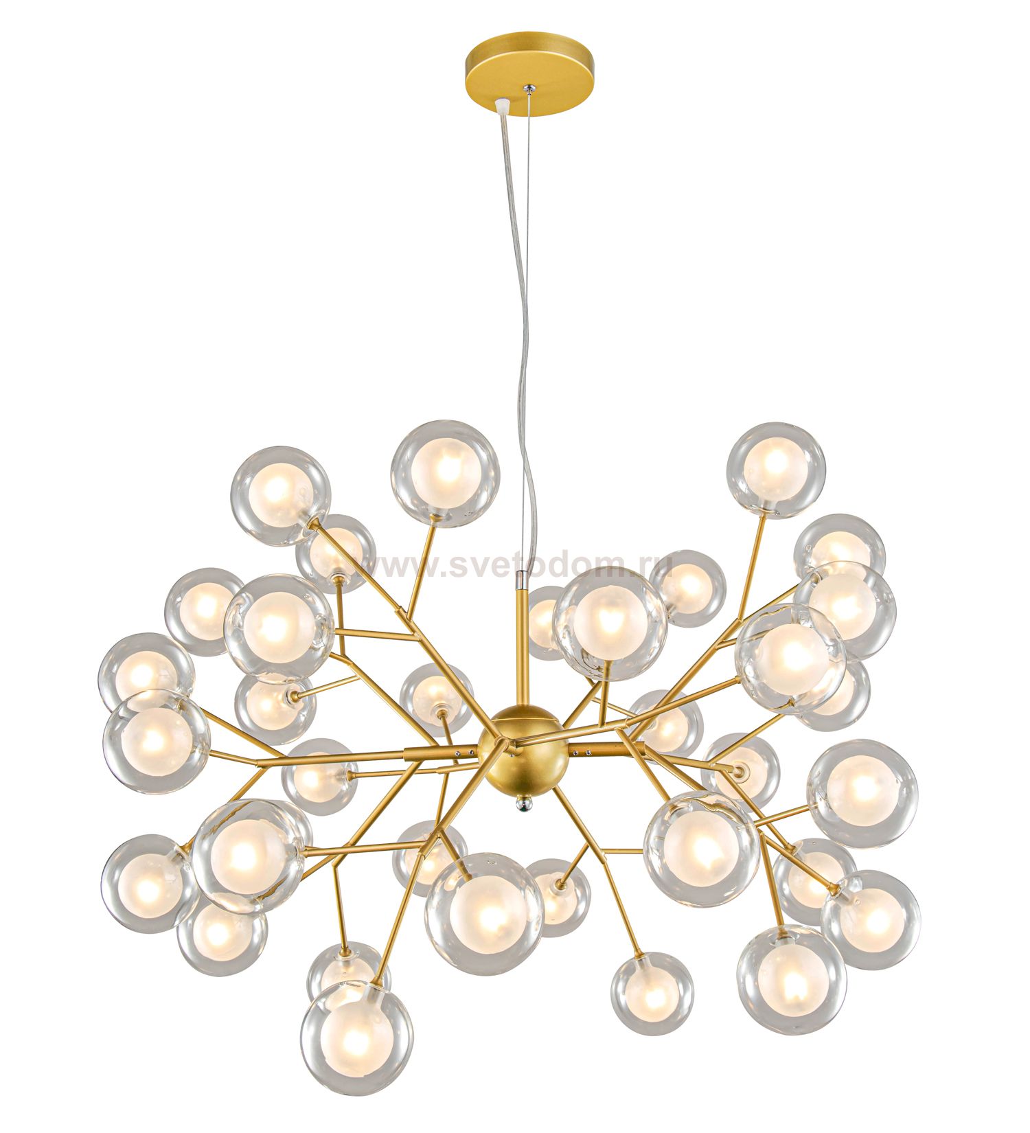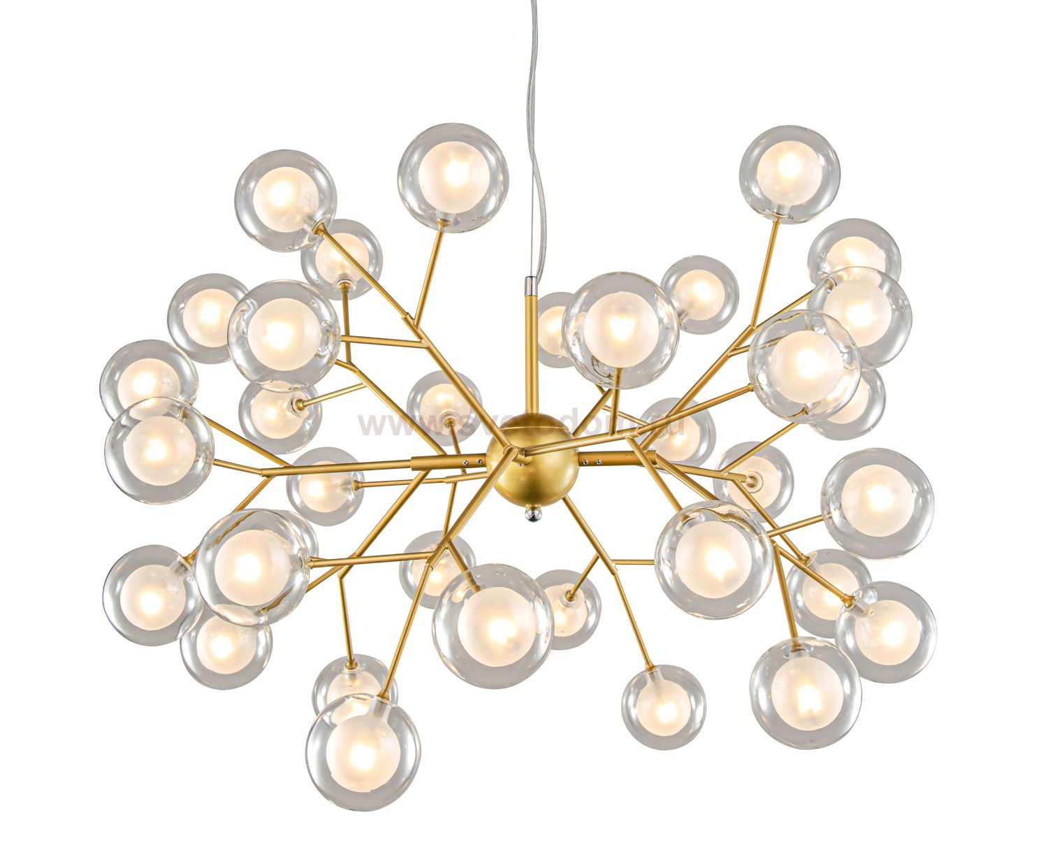 Светильник крепится при помощи прочной металлической нити, которая соединяет потолочную планку и стержень, отходящий от шарообразного основания. Он представлен в четырех модификациях, различных по высоте, диаметру и числу лампочек. Подходит для оформления гостиных, торговых залов и развлекательных заведений.