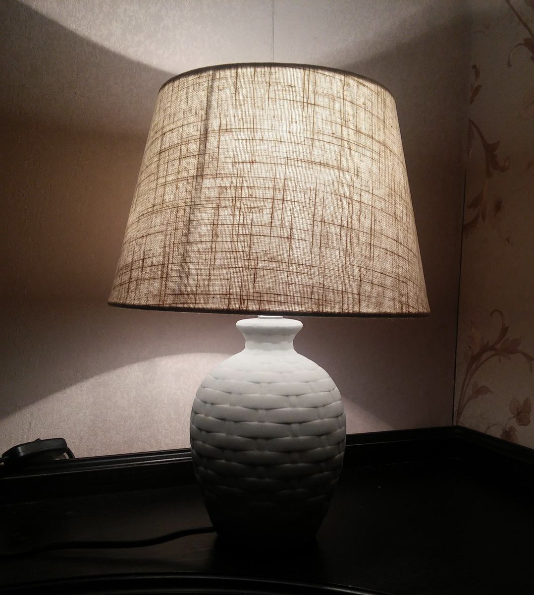 Основание из керамики. Абажур из хлопка бежевого цвета (модель Z003-TL-01-W). Абажур из ПВХ покрыт искусственным бархатом (модель Z006-TL-01-W). Комментарий