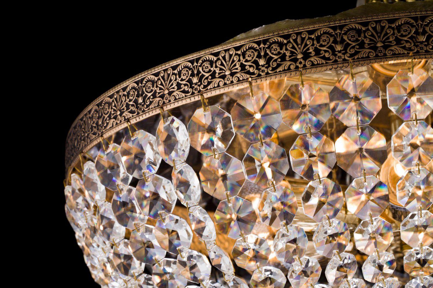 Люстра подходит для помещений с высоким потолком, декором является орнамент на арматуре, подвески , 6 ламп освещает 24 м2, Комментарий